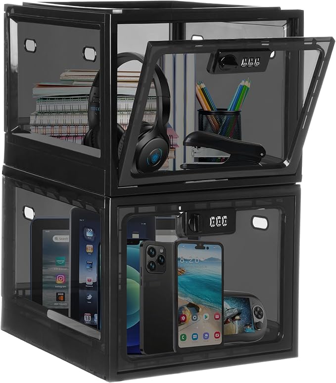 Lalifebuss Combination Lock Boxes for Personal Items, Lockable Storage Box for Office Locker/School/Medicine/Snacks/Phone Jail/Electronic/Home (2 Pack/Black)