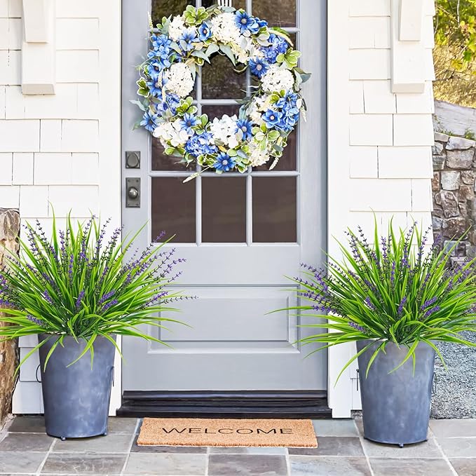 10 Pcs Artificial Plants Outdoor, UV Resistant Fake Outdoor Flowers Plants Faux Plastic Monkey Grass for Outside Front Porch Garden Window Box Home Office Planters Desk Decor (Purple)