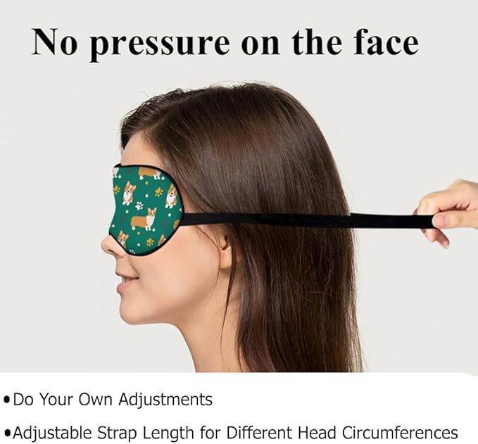 Funny Dog Sleep Mask Eye Mask Corgi Cute Puppies Cartoon Pet Animal Green Sleep Mask Light Blocking Adjustable Smooth Soft Eye Masks for Women Deep Rest Travel