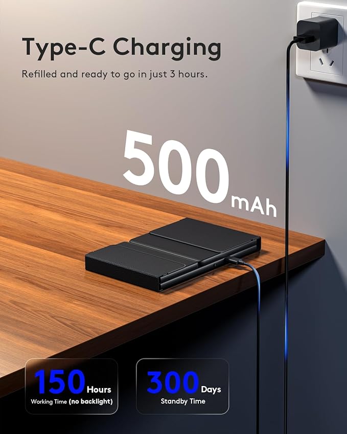 - 【Folding Keyboard with Numeric Keypad】Upgrade equipped with standard numeric keyboard to facilitate quick calculation and streamlined numeric input. Richer and more practical multimedia shortcuts with fn lock function make your work more convenient and efficient! Built-in 500 mAh battery can last up to 150 hours (no blacklight) or standby 300 days after a 2-3 hour charge. One full zcharge is enough time for your short business trip or vacation!