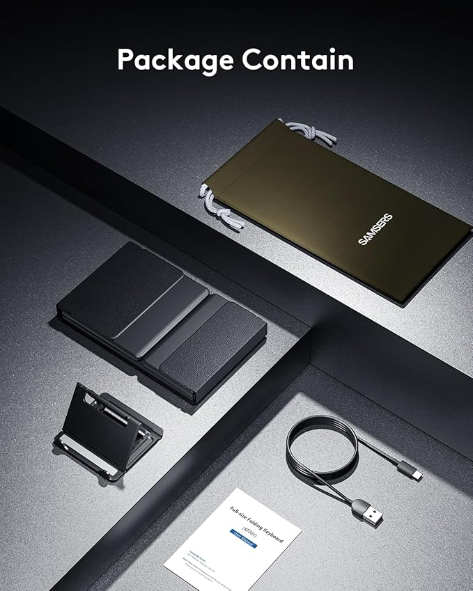 - 【Little Things & Big Convenience】 Samsers folding keyboard with backlight, only 11.0 ounces. Palm-sized keyboard can be folded up magnetically and put in your briefcase without taking up much space. Maximum convenience for you with minimum weight and size! Comes with a phone stand and a velvet storage bag, the perfect companion for a folding keyboard. Not just a keyboard, but a travel solution!