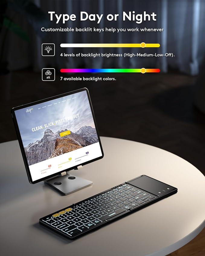 Samsers Foldable Bluetooth Keyboard with Touchpad, Full-Size Wireless Folding Keyboards with Backlight, Portable Travel for iOS Android Windows Mac OS, Support 3 Device(BT5.1 x 3), Black