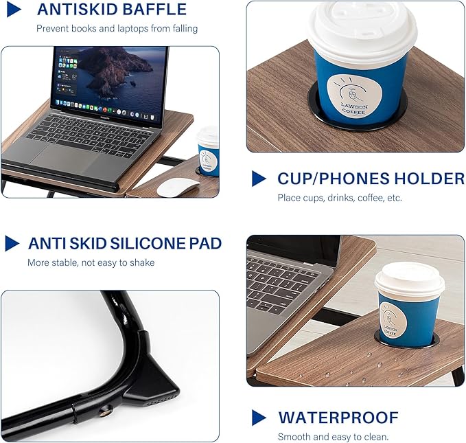 - Split Desktop Design: The bed desk compared to other models of desktop can be tilted bed table, more convenient to use, our desktop using part of the tilt design, the left side can be tilted desktop size (14.76*12.7in), compatible with most laptop computers, the right side of the desktop size (7.12*12.7in), tilted at the same time you can use the mouse, placing cups of water, food and so on, and is not easy to slide off
