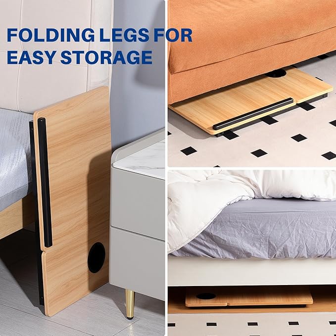 - Split Desktop Design: The bed desk compared to other models of desktop can be tilted bed table, more convenient to use, our desktop using part of the tilt design, the left side can be tilted desktop size (14.76*12.7in), compatible with most laptop computers, the right side of the desktop size (7.12*12.7in), tilted at the same time you can use the mouse, placing cups of water, food and so on, and is not easy to slide off