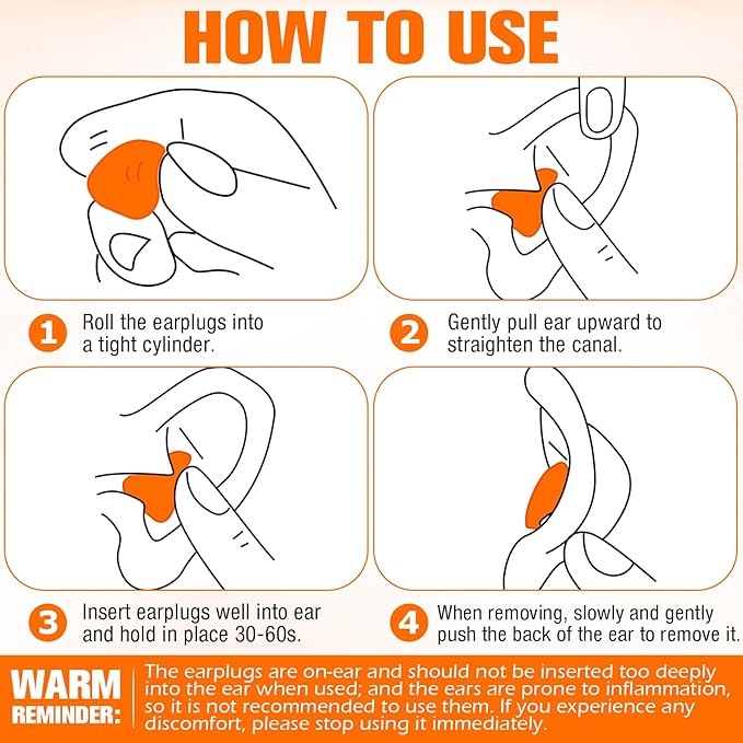 - What you receive: you will receive 21 pairs silicone ear plugs in orange color, the sufficient quantity will meet your various needs and you can also replace your old one or as a backup. Warm reminder: The earplugs are on-ear and should not be inserted too deeply into the ear when used; And the ears are prone to inflammation, so it is not recommended to use them. If you experience any discomfort, please stop using it immediately