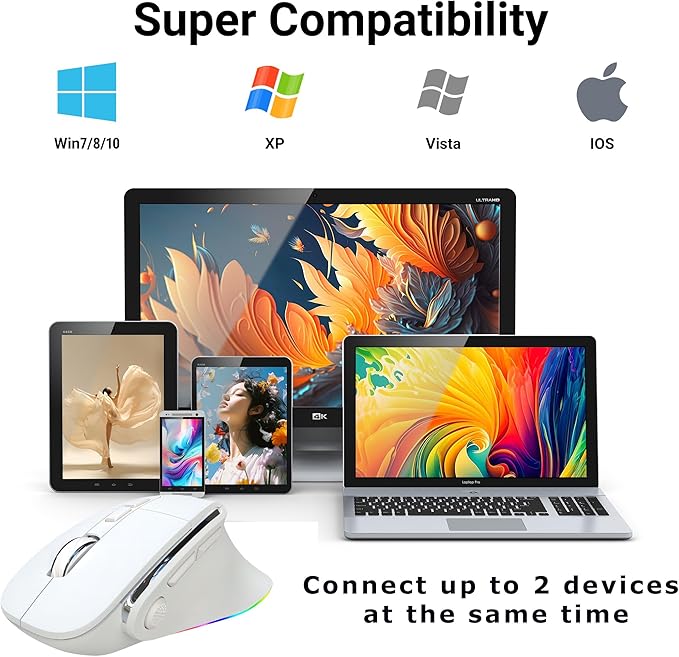 - Dual Mode Connectivity: Our wireless mouse for mac/laptop/pc/computer/desktop/apple ipad/ipad pro/macbook air/macbook pro/tablet offers the convenience of dual mode connectivity, allowing you to effortlessly switch between 2.4G wireless and Bluetooth modes. Stay connected and productive across multiple devices with ease.Our multi device mouse enjoys one year worry free warranty.Perfect christmas gift or other festival gift for men women mom dad daughter wife boyfriend grandparents grandma grandpa teenage boy girl sister teacher brother coworker neighbor husband.Perfect Mothers Day Gift for Mother. Perfect Fathers Day Gift for Father