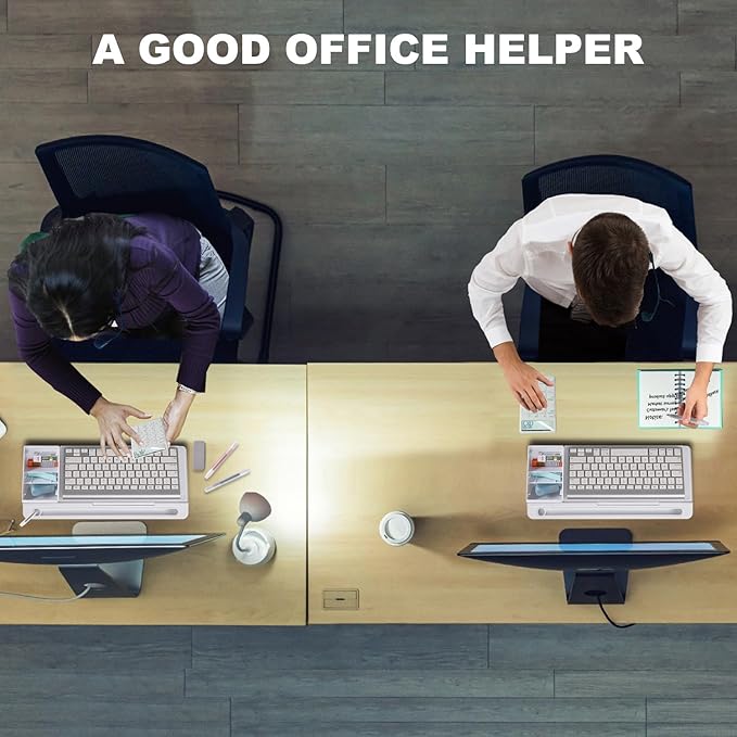 - PERFECT DESIGN: Maximize your work area. The desktop whiteboard is designed to sit perfectly between a keyboard and monitor and is slope angled for comfortable reading and writing, or typing when you are using it as a keyboard stand.