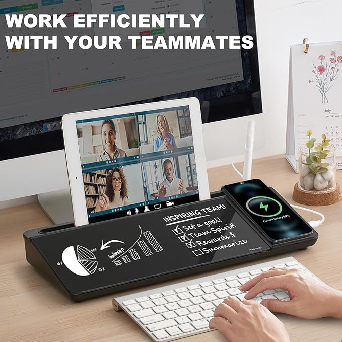 - Wireless Charge Base: TSJ OFFICE desk glass white board with wireless charger stand makes it very convenient to charge your compatible devices safety without additional cables or adapters. With 5ft Type-C Cable complies with part 15 of the FCC Rules.