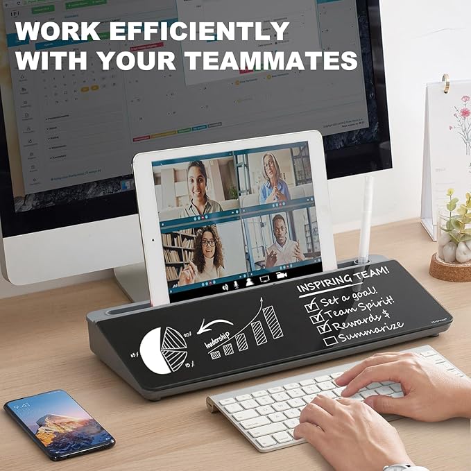 - PERFECT DESIGN: Maximize your work area. The desktop whiteboard is designed to sit perfectly between a keyboard and monitor and is slope angled for comfortable reading and writing, or typing when you are using it as a keyboard stand.