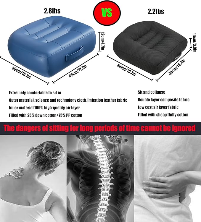 with Carry Handle Comfortable Cushion for Home Office Chair Pad Car Seat Cushion Effectively Increase The Field of View by 12cm/ 4.7in,and Lower Back Fatigue Relief (Navy Blue)