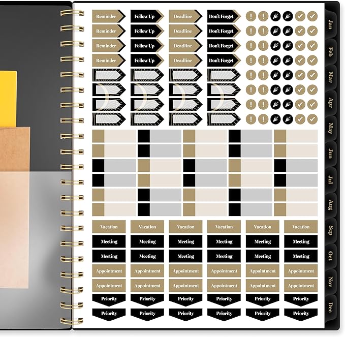 - STYLISH & STURDY – Create a lasting relationship with your planner. The durable poly cover helps the planner stand up to wear and tear, while the gold twin wire binding helps keep pages secure and won’t snag on your bag.