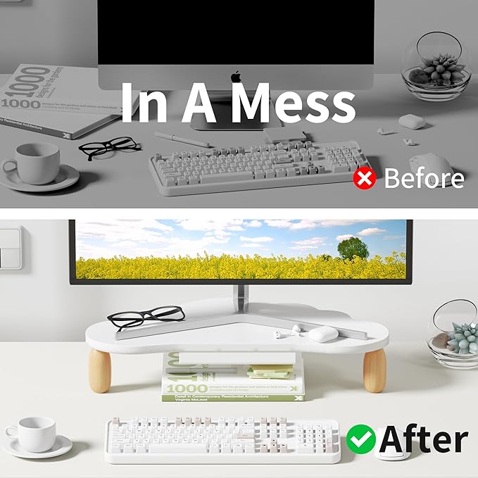 - 【Ergonomic Design】Featured ergonomic design, AFOOYO monitor stand raises your monitor screen to a comfortable eye level (about 3.2 inches) for relieving stress on the neck, shoulders and back, and improving work efficiency.