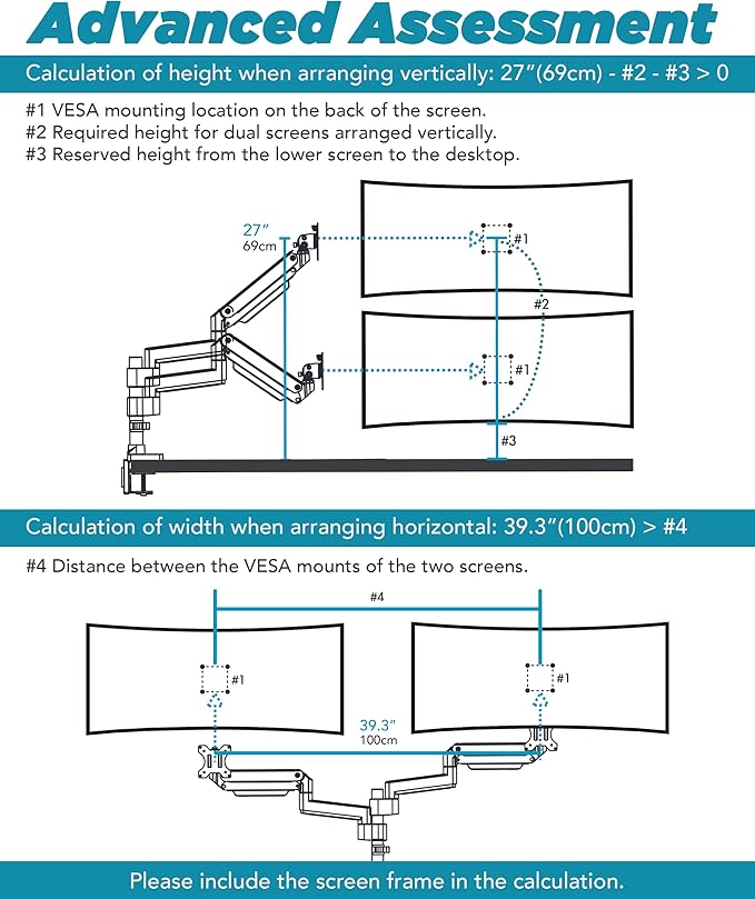 - Fits Ultra Wide Monitors - Holds one screen weighing up to 44 lbs. Fits ultrawide monitors up to 57" and downward compatible 49" to 24" flat, curved up to 1000R screens. The quick-release VESA bracket has 75x75mm and 100x100mm mounting capability.