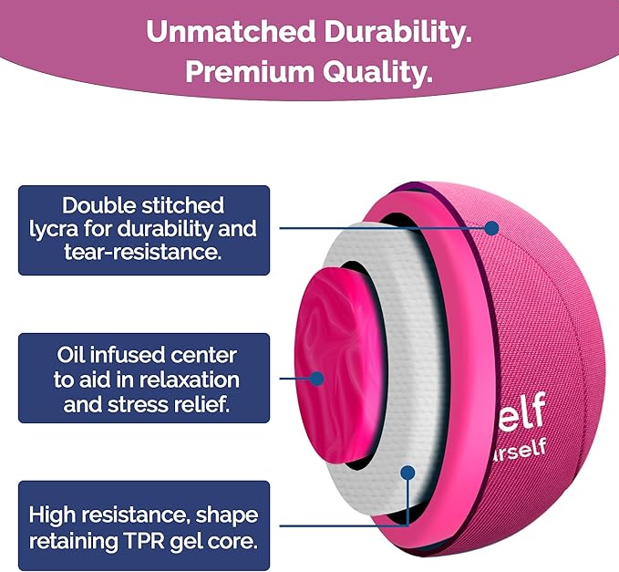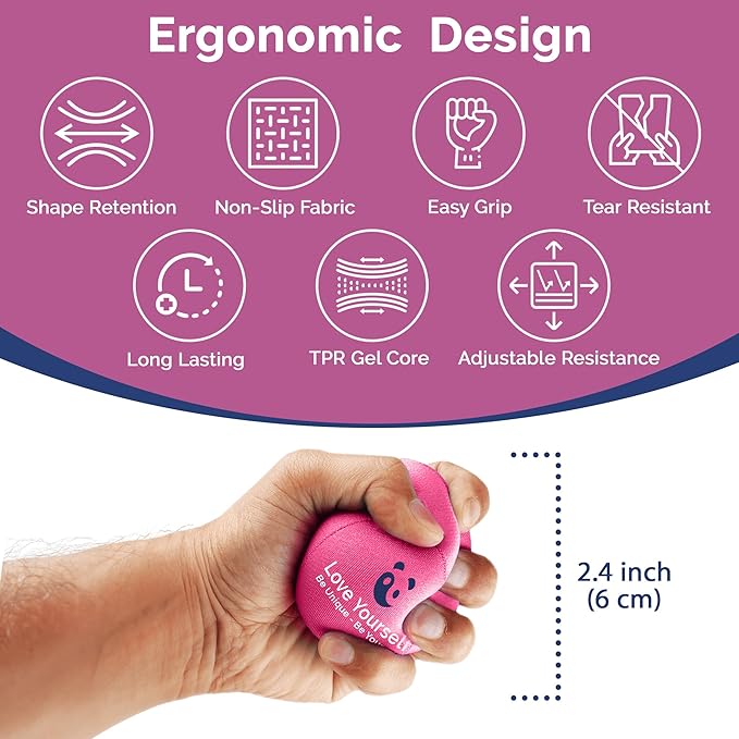 - Premium quality, ultra durable, larger sizing- Our ergonomic stress relief ball is made of a tear resistant gel core and sleek non-slip and non-stock fabric. Our inner core gel is oil infused with stimulating scents to aid in mindfulness, relaxation and stress relief.