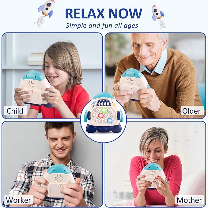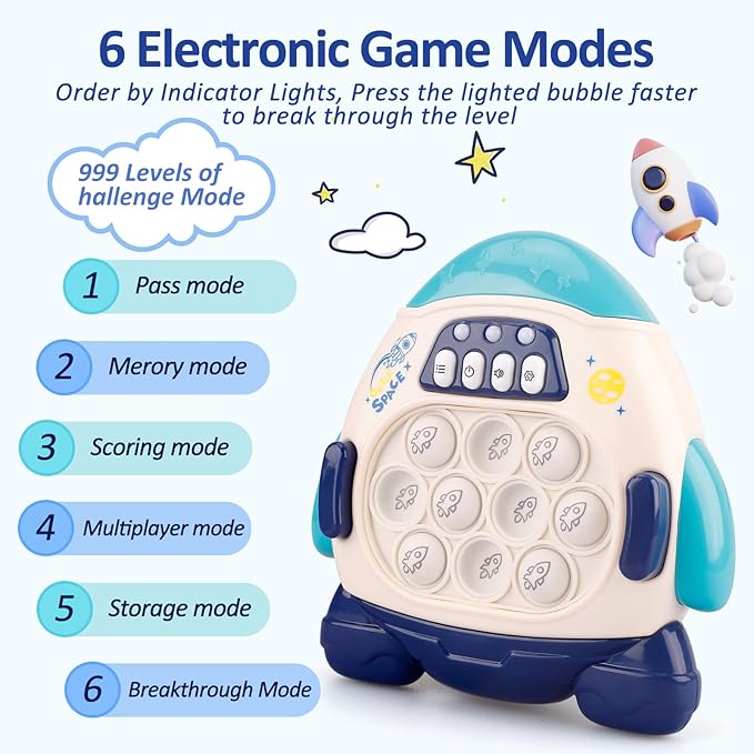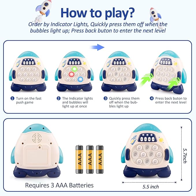 Fast Push Fidget Toys for Kids, Handheld Puzzle Sensory Toys, Quick Push Light Up Pop Game Gifts for 3-12 Year Old Boys Girls, Easter Basket Stuffers (Rocket)