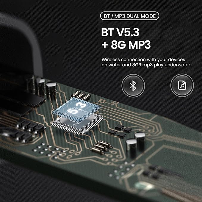 Bone Conduction Headphones IP68 Swimming Waterproof Dustproof Sweatproof MP3 Player Headset Underwater Music Player 8GB 1000 Songs, Open-Ear Wireless Earphones Bluetooth 5.3 with Mic - Blue