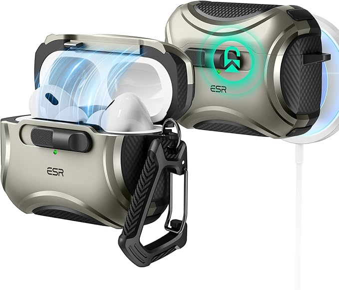 ESR for AirPods Pro Case (2023/2022/2019, 2nd/1st Gen), Compatible with AirPods Pro 2nd Generation (USB-C/Lightning Cable), Effortless MagSafe, Drop-Proof Lock, Easy Open, Cyber Series, Titanium