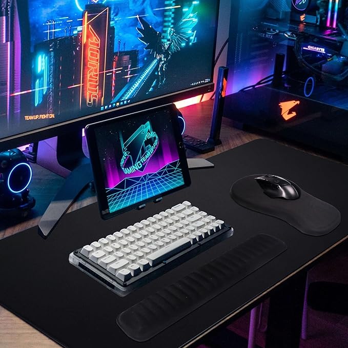 - NON-SLIP SILICONE BASE: The bottom of the mouse pad with wrist rest and keyboard pad is made of non-slip silicone material, ensuring it stays firmly in place on your desk and prevents sliding. Say goodbye to shifting troubles!