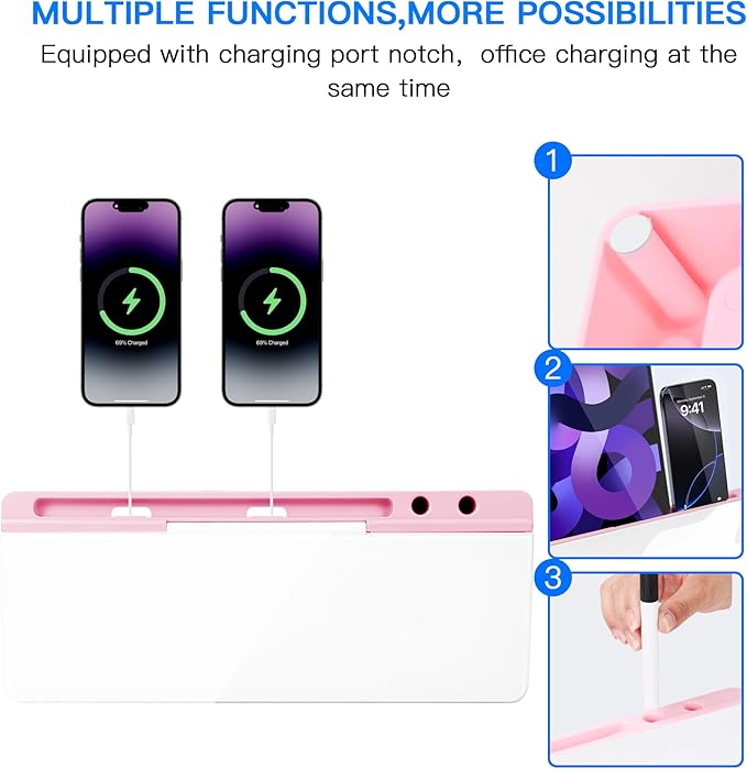 - Multi-function--Other than the glass board and built-in storage box, this product also has a slot on the top which can hold a phone or a tablet. And the product itself can serve as a keyboard pad if you need