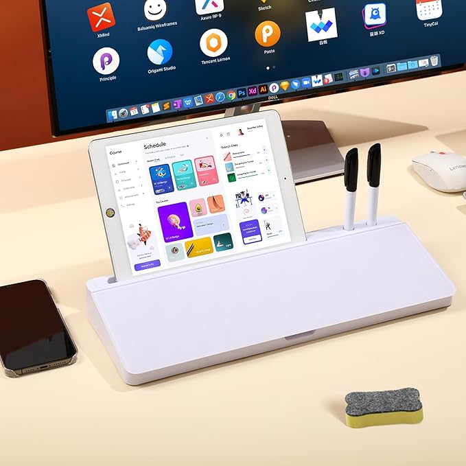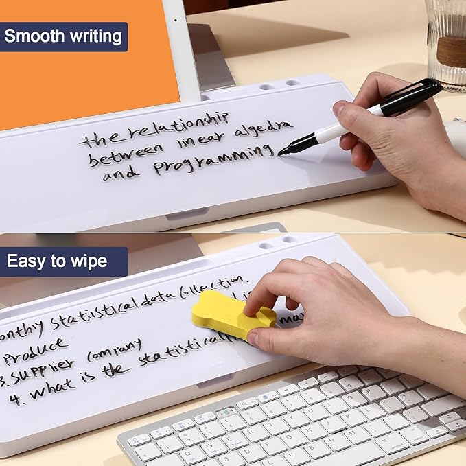 - Perfect Design - KVY desktop whiteboard can be placed on your desk, with internal compartments for storing pens, dry erase markers, paper clips, keys, and even a phone, scissors, stapler, office supplies, and more. Declutter your desktop and keep it neat and clean.