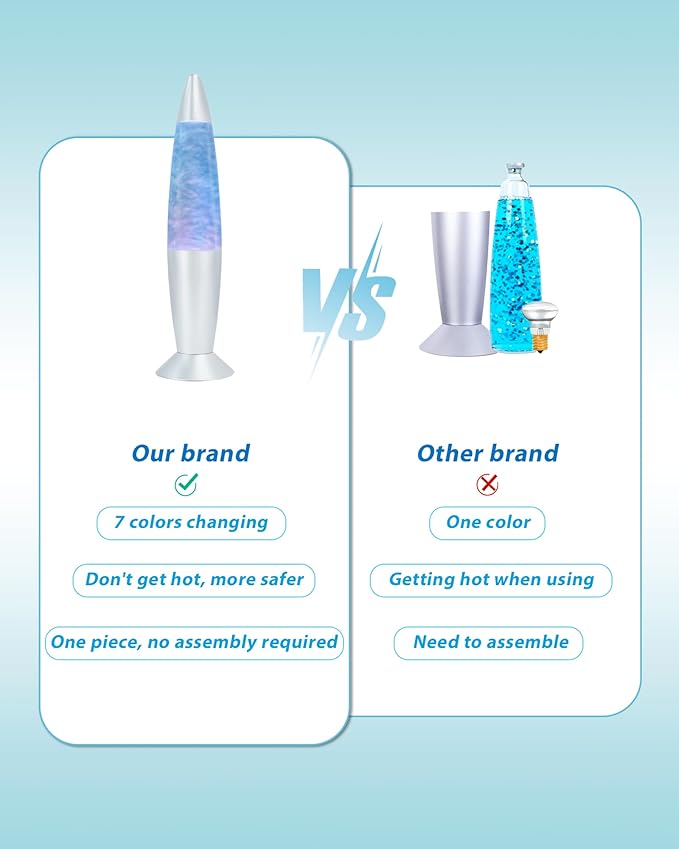 - 【Small and Impact】:The 13.5 inches motion lamp with unique rocket shape design, sliver base and cap is harmony with rainbow light changing, it is elegance and groovy. It can be convenient to place anywhere you want. It is perfect gift for kids, adults, parents, friends, lovers. Everyone will love this stress-relieving light.