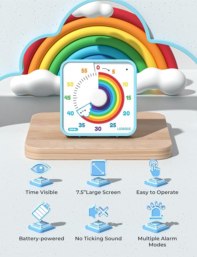 - EXTRA LARGE VISUAL TIMER - Get a LIORQUE 7.5-inch visual countdown timer, say goodbye to Procrastination, Weak motivation, Game addiction, Ineffective learning and Lack of planning. Just glance at the timer to know how much time is left, which is a perfect timer for classroom or as a kitchen timer for cooking.