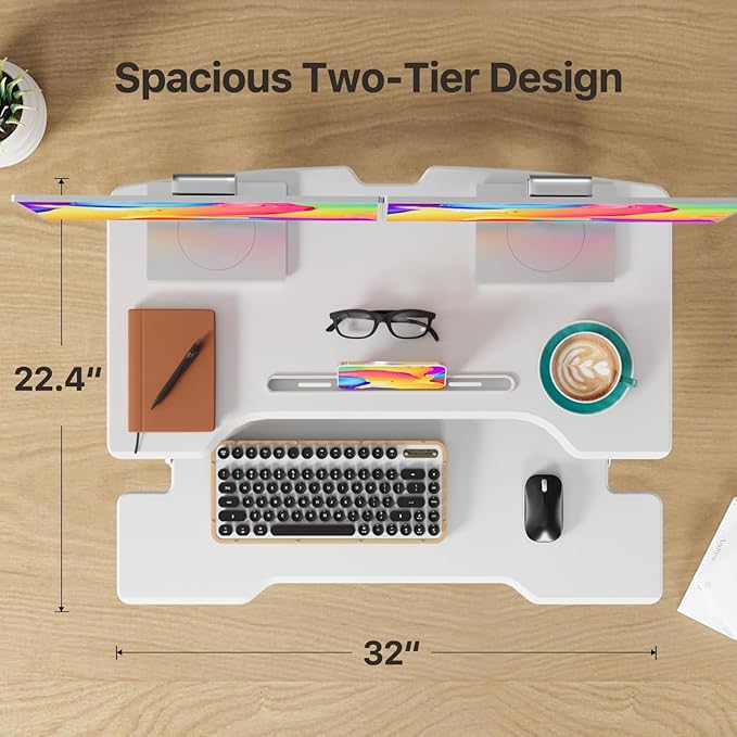 Standing Desk Converter 32 inch, Height Adjustable Sit Stand Desk Riser, Quick Sit to Stand Tabletop Dual Monitor Riser Workstation for Home Office with Keyboard Tray, White