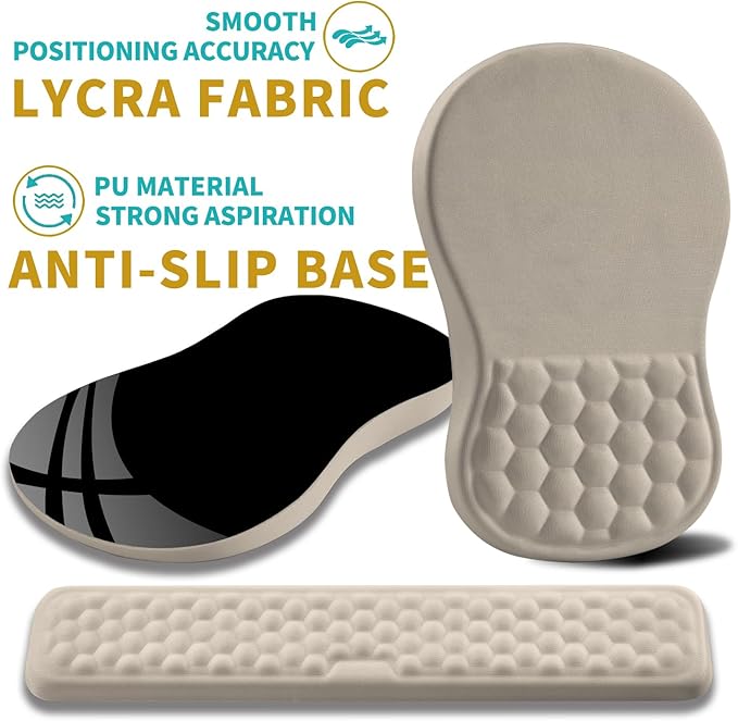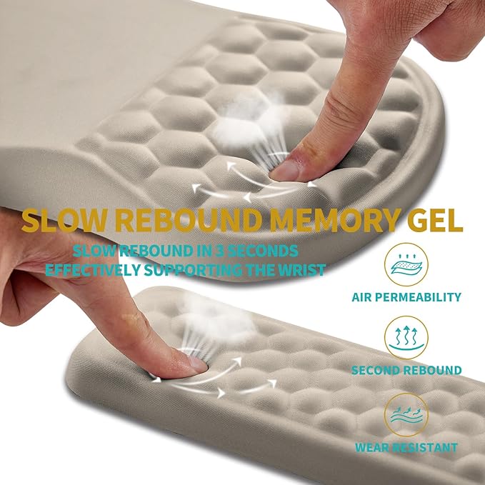 - 【Ergonomic Massage Design】The innovative ergonomic slope and massage bump design perfectly support the wrist and palm. Massage bump design can effectively relieve wrist pain and fatigue, improve carpal tunnel syndrome (CTS), strengthen the air circulation between wrist and mouse pad, prevent sweating, and keep your wrist in the most comfortable state.