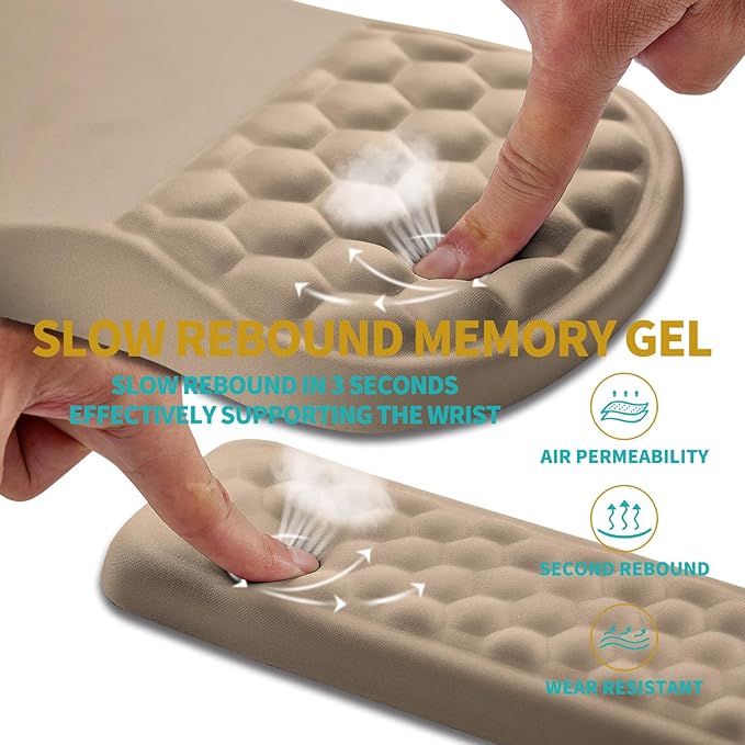 Hokafenle 2 in 1 Ergonomic Mouse Pad Wrist Support & Wrist Rest for Computer Keyboard Set, with Relieve Carpal Tunnel Pain Massage Bulge and Full Memory Gel Design (2In1 Set, Sand Color)