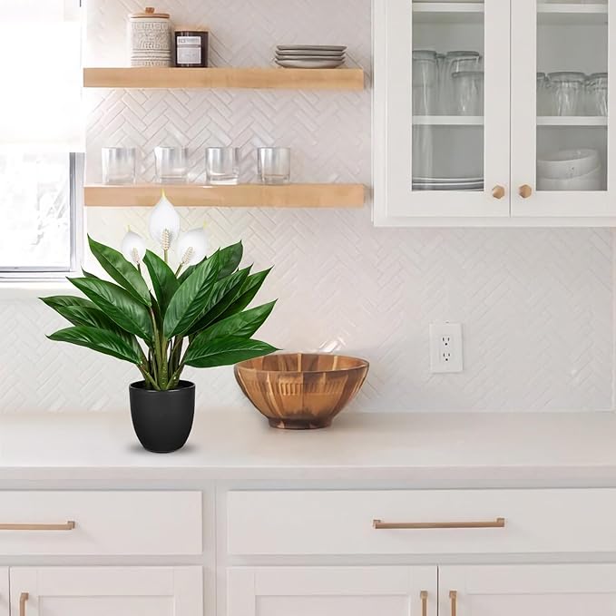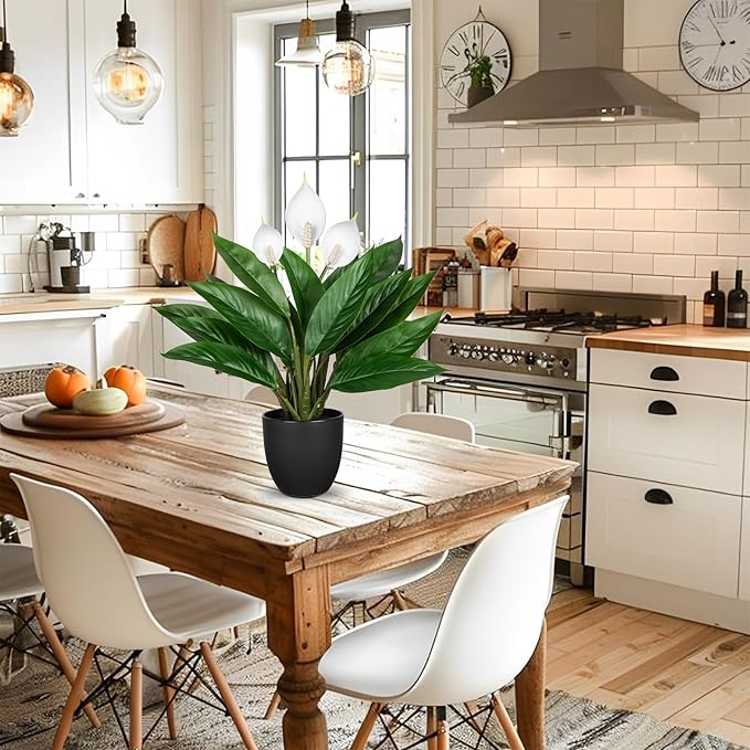 - [Realistic Fake Plant] -Crafted from 22 long and glossy leaves and 3 white flamingo flowers, our fake potted plants boasts a full and natural look with a strong visual appeal. A wonderful companion that won't disappoint, great choice to fill a monotonous space.