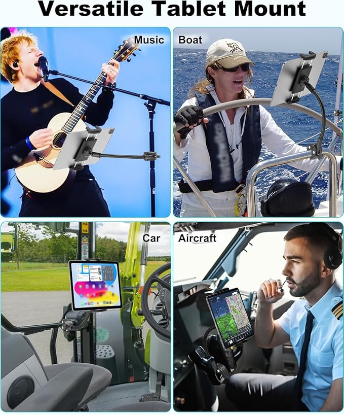 - 【Easy Installation】Without additional tools required, easy installation anytime, anywhere, All Dosvsi products with a 60-day refund and a 12-month worry-free warranty. If you have any questions during use, please contact us. (Package Includes: 1x tablet clamp, 1x gooseneck mount, 1x user manual.)