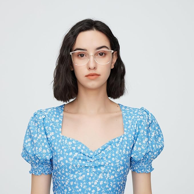 - [TR90 Frame & Horn-rimmed Design] Made of durable & flexible TR90 Frame, suitable for long-term wearing. The glitters on the sides add so much modern take on a classic shape, featuring softly curved lenses and delicately detailed temple arms.