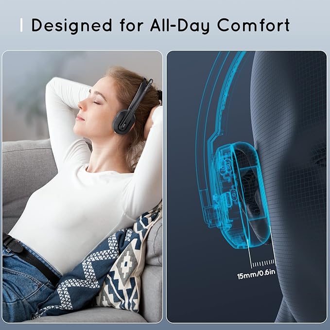 - 【Ultra-light & 270°Rotatable Mic 】Mono Headset Built For All-Day Comfort With 75g(2.64 oz), the 270° rotatable microphone is reversible to use this bluetooth computer headset on your left or right ear. this professional pc headset with mic captures your voice with exceptional clarity. The clever ambidextrous design allows you to switch up your listening ear on the fly.