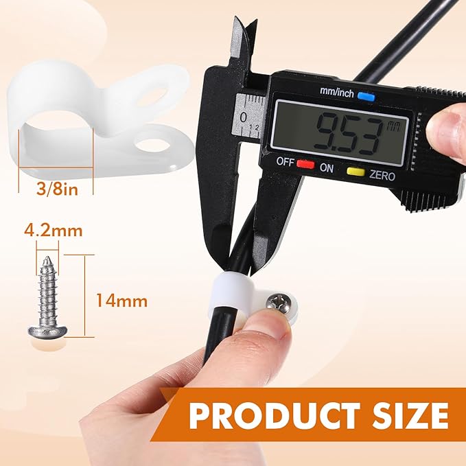 - Size: the r-type cable clip has a 3/8inch closed diameter; Quantity: 50 pack r-type clamps and 50 pack matching screws, they can be applied repeatedly