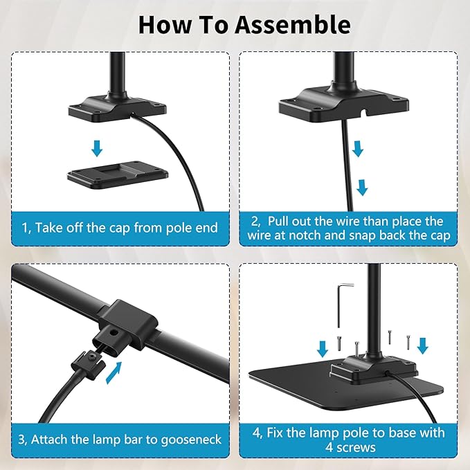 - 【Stable Base fits for all tabletop】This tall desk lamp comes with metal heavy base allows it stand on any kind of tabletop firmly and it takes up little desk space, ideal for dual monitors, cured wide monitors or L-shape multi tasks desk.