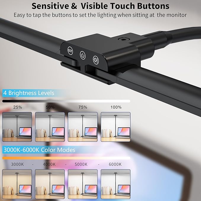 - 【Easy Operated Front Touch Buttons】The Front buttons are designed in front of the light bar which is visible when sitting at the table and smooth to switch the light modes: 4 brightness levels and 4 color modes.