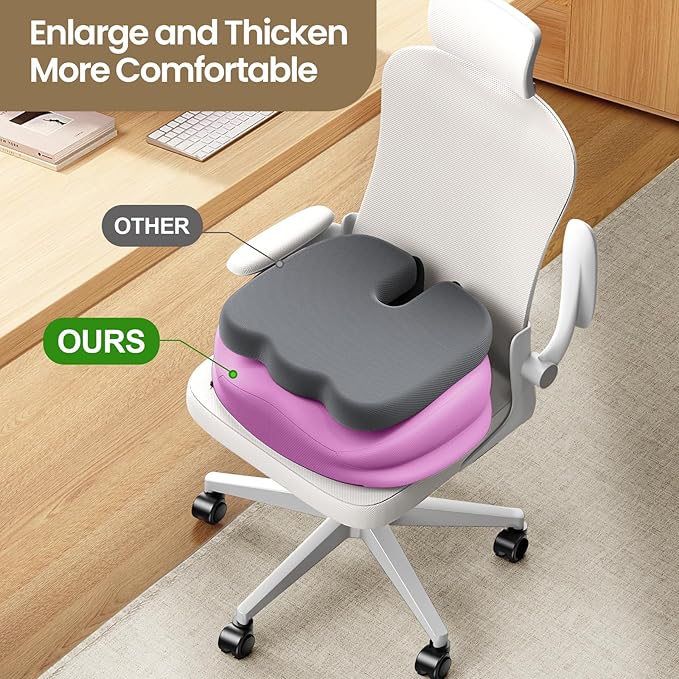 Benazcap Large Seat Cushion for Office Chair Memory Foam Coccyx Pain Relief Cushion Pillow for Back Support Non-Slip Seat Pad for Office Desk, Car Seat, Wheelchair, Sciatica-Pink