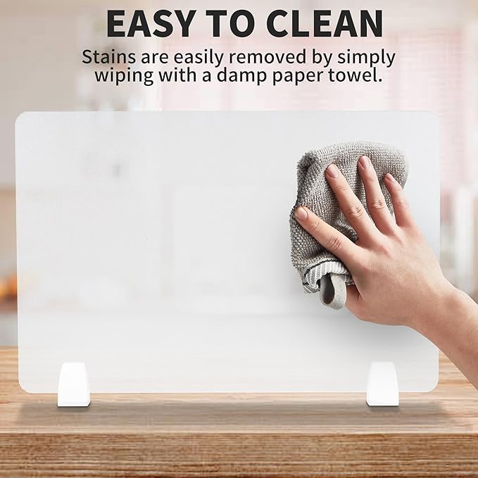 - HIGH QUALITY MATERIAL : Our acrylic desk dividers is made of high quality frosted acrylic with a thickness of 0.2 feet, which is strong and durable, easy to clean, not easy to deform, helps to keep the office environment neat and tidy, and can be used for a long time