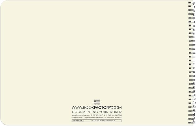 BookFactory Accounting Ledger Notebook/Large 3 Column Accounting Ledger Columnar (Three Columns) Log Book - 17'' x 11'', 100 Pages, Wire-O Landscape Format (LED-100-CLCW-PP(17x11-Ledger-3)-AX)