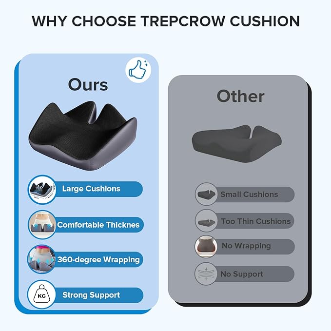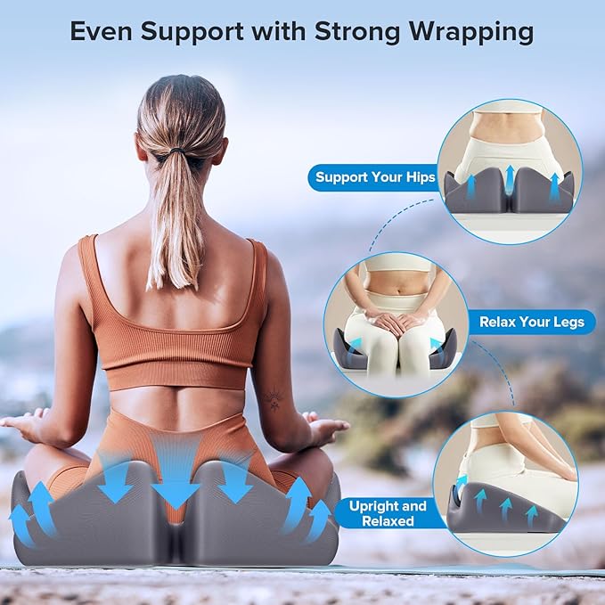 - Advanced Ergonomic Design for Ultimate Pain Relief -- Experience unparalleled comfort with our scientifically designed seat cushion. The central coccyx cutout completely eliminates pressure on your tailbone.This ergonomic design effectively alleviates pain associated with prolonged sitting, including lower back pain, sciatica, and hemorrhoids, Uniquely designed with 5.8-inch raised tail and sides, it creates a comfortable, contoured shape to prevent hip sagging from prolonged sitting.