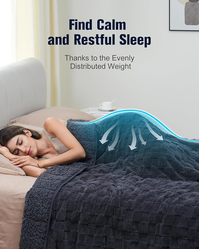 - Double-Sided Softness: This heavy blanket is made from OEKO-TEX certified 260gsm checkered fleece and 220gsm Sherpa fleece, giving it a plush, velvety softness that feels like pure luxury against your skin. With refreshing hues and a unique 3D checkerboard pattern, it adds a chic, modern touch to any home decor