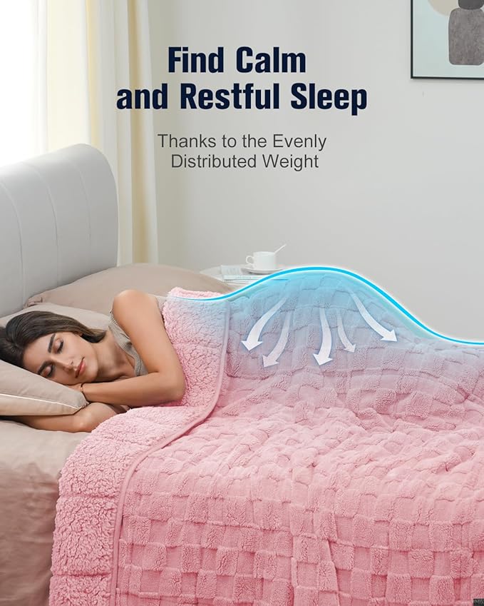 - Double-Sided Softness: This heavy blanket is made from OEKO-TEX certified 260gsm checkered fleece and 220gsm Sherpa fleece, giving it a plush, velvety softness that feels like pure luxury against your skin. With refreshing hues and a unique 3D checkerboard pattern, it adds a chic, modern touch to any home decor