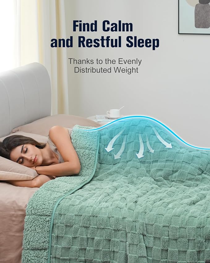 - Double-Sided Softness: This heavy blanket is made from OEKO-TEX certified 260gsm checkered fleece and 220gsm Sherpa fleece, giving it a plush, velvety softness that feels like pure luxury against your skin. With refreshing hues and a unique 3D checkerboard pattern, it adds a chic, modern touch to any home decor