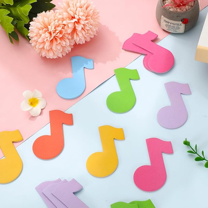 - MUSIC NOTE DESIGN: Our note pads are designed as the musical notes shape in 6 different colors, including orange, pink, yellow, purple, blue and green, vivid and delicate. While enrich the appearance of the sticky notes, they also add color to your life.
