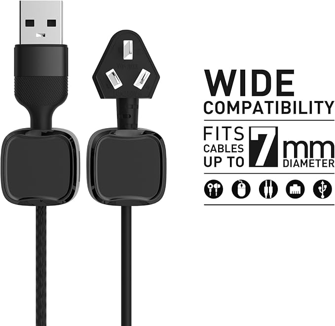 - WIDE COMPATIBILITY: Fits cables up to 7mm diameters, which include your iPhone charger cable, USB cables, type C cable, network cables, HDIMI cord, kitchen appliance power cord and so on.