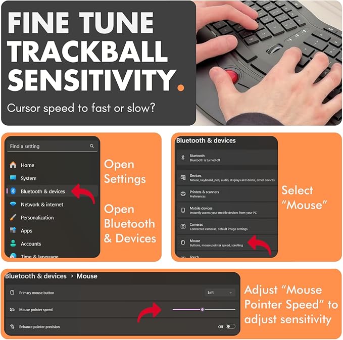 - (BUILT-IN TRACKBALL): Centralized trackball design for effortless thumb navigation. Adjust quickly, work efficiently, and reduce finger strain for a more comfortable experience.