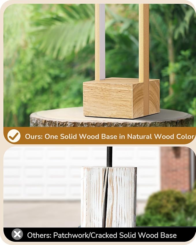 - [Minimalist Square Look] Elegantly designed with a gold matte finish in a minimalist square frame, it matches a burlywood solid wood base that exudes a natural aesthetic; the aluminum modern table lamp body ensures efficient heat dissipation, keeps a balance between texture and environmental