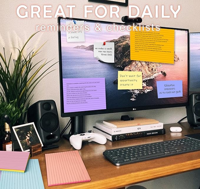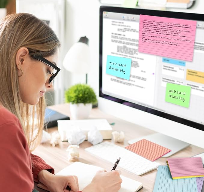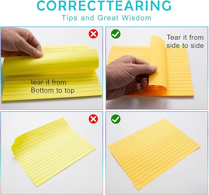 - ✅ Ensures that Do Not Fall Off - 8 x 6 sticky notes made with high quality paper and adhesive, easy to use and peel, super sticky, removes cleanly. Sticky notes lined are suitable for school, office, family.