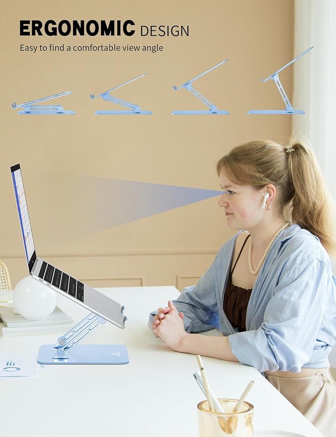 Laptop Stand Adjustable Laptop Holder for Desk, Foldable Laptop Riser Portable Computer Stand Compatible with MacBook, Lenovo, HP and All Laptops up to 15.6 inches Diamond Blue