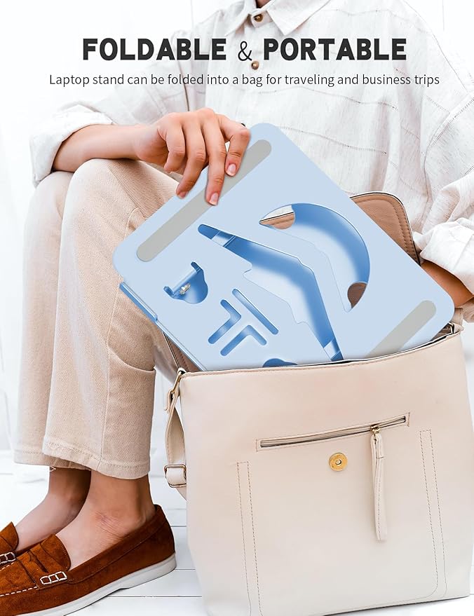 - FOLDABLE & PORTABLE: This sleek, foldable laptop holder adopts a compact 'Z' design for effortless portability. Anti-slip silicone strips on the surface provide stability, making it perfect for work or travel